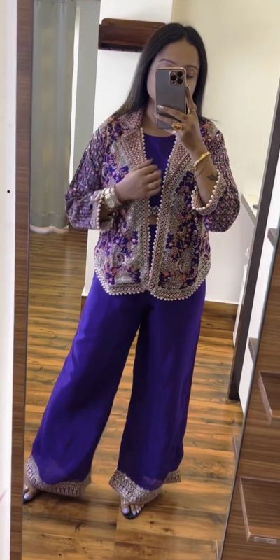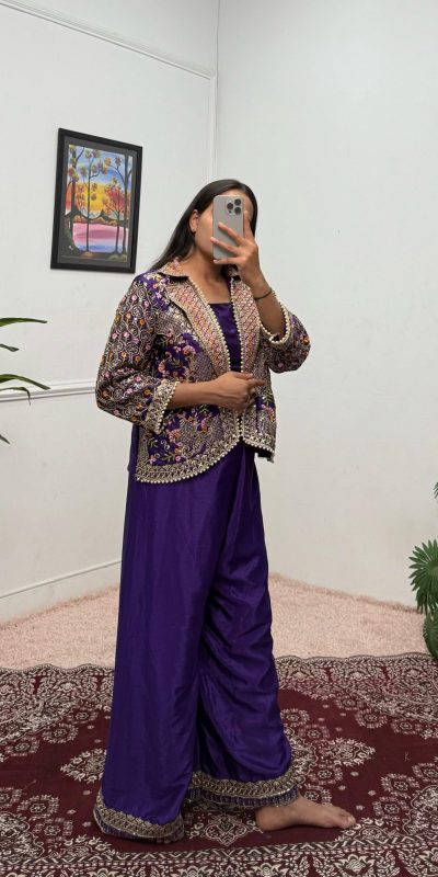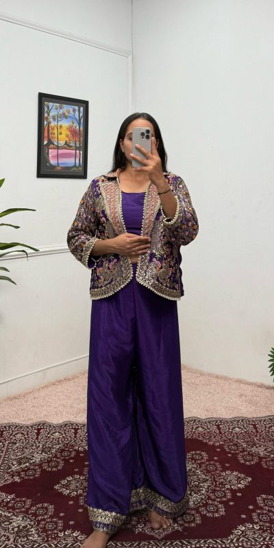 Lovely Purple Color Chinon Embroidery With Moti Lace Salwar Suit