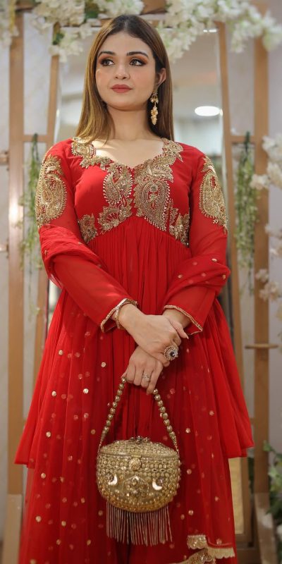 Red Georgette Sequence Lace Work Salwar Suit