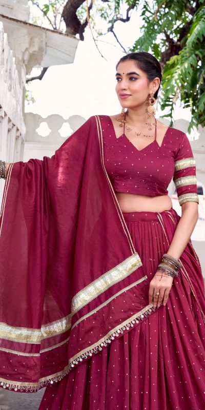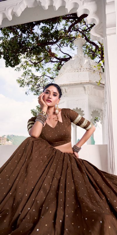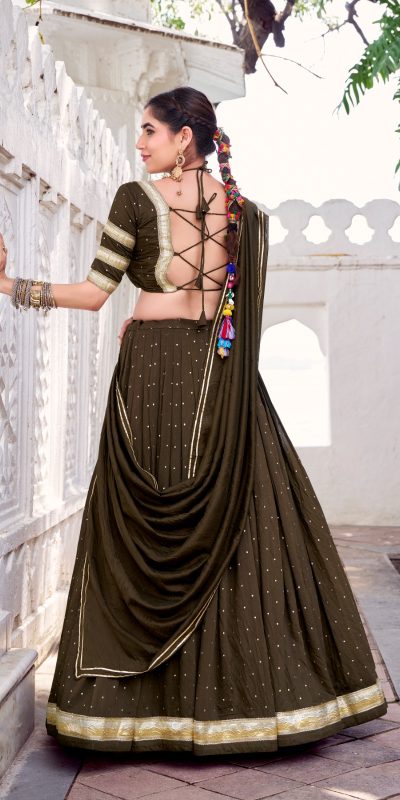 Brown Chanderi Lace Zari Work Lehenga Choli