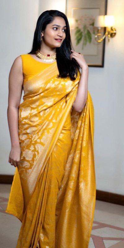 DDF Yellow Flower Soft Lichi Silk With Ordinary Design Saree Casual, Party Wear, Wedding, Events, Etc. Expected Delivery 4-6 Working Days 1399/-