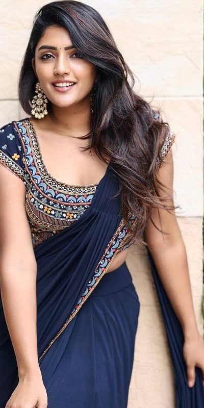 Eesha Rebba Royal Blue Color Georgette Embroidery Zari Saree