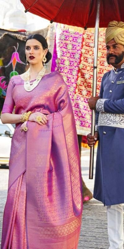 Dazzling Pink Color Soft Lichi Silk Jacquard Rich Pallu Saree