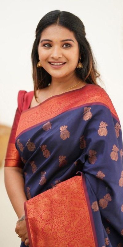 KP – 4061 Navy Blue Color Soft Lichi Silk Jacquard On All Over Saree Casual, Party Wear, Wedding, Events Etc. Expected Delivery 4-6 Working Days @1449/-