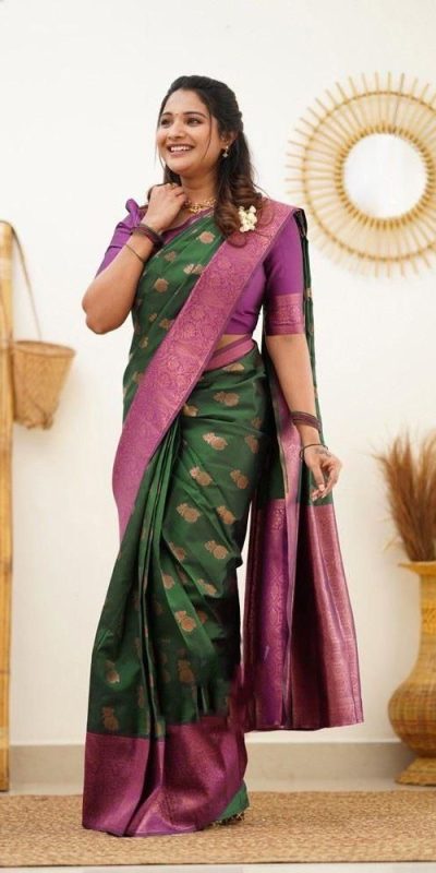KP – 4061 Green Color Soft Lichi Silk Jacquard On All Over Saree Casual, Party Wear, Wedding, Events Etc. Expected Delivery 4-6 Working Days @1449/-