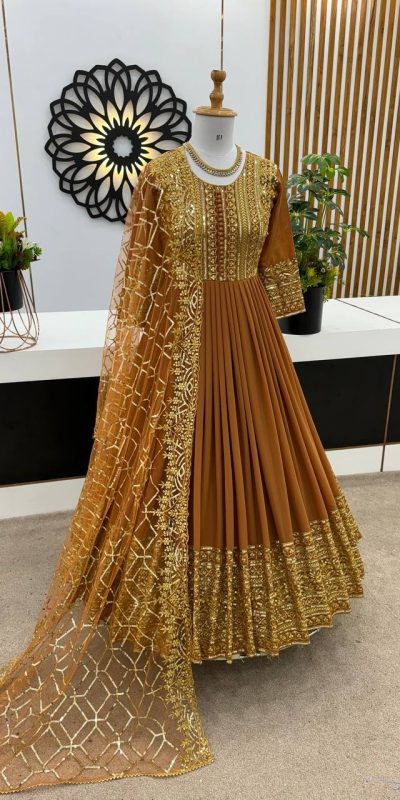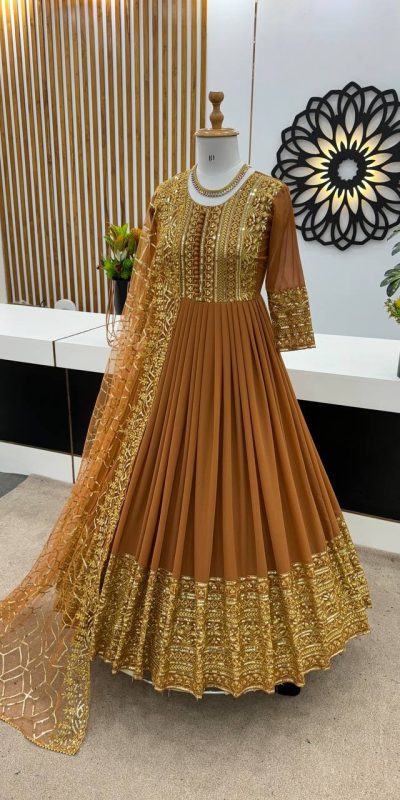 ZSR 3059 Mustard Color Georgette Embroidery Sequence Work Gown Casual, Wedding, Party, Festive, Events Etc. Expected Delivery 4-6 Working Days 2049/-