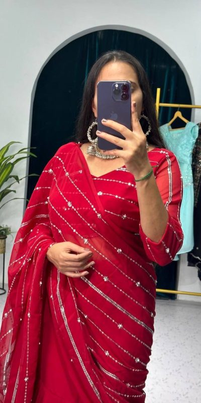 ST 1035 Maroon Color Georgette Embroidery Moti Work Lehenga Saree Casual, Wedding, Party, Festive, Events Etc. Expected Delivery 4-6 Working Days @2049/-