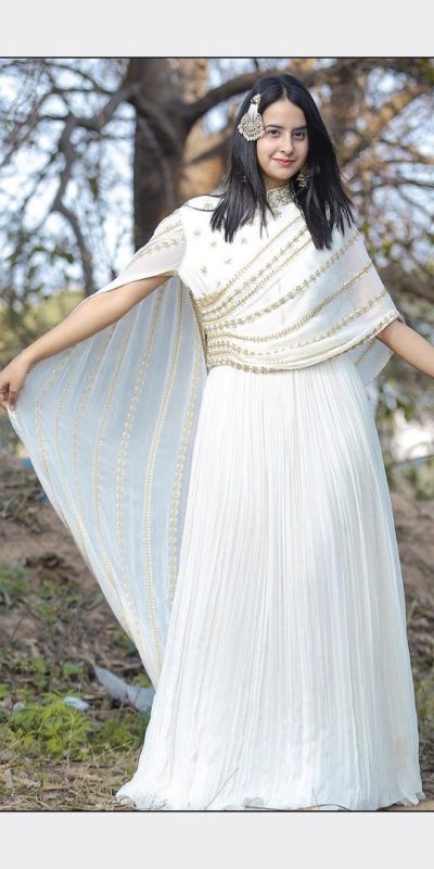 | Fabrics | Fabric : Georgette Inner : Butter Crape Work : Threadbare With Sequin Work Front Side Work With Full Sleeve Work Stitch : Free Size Semi Stitched With Pattern Style With Zip Size : Free Semi Stitched Lenth : 57 Flair - 3.00 Mtr Type : Long Gown Western Style |