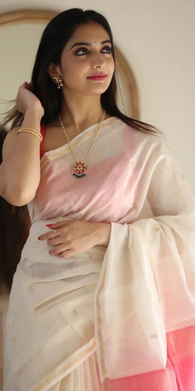 KP 5034 White Color Soft Lilan Slab Jacquardย Work Saree Casual, Party Wear, Wedding, Events Etc. Expected Delivery 4-6 Working Days @1449/-