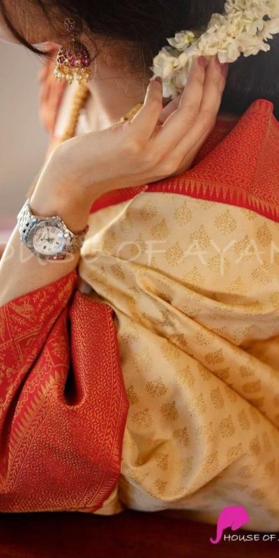 Aglow Cream Color Soft Lichi Silk Jacquard All Over Work Saree