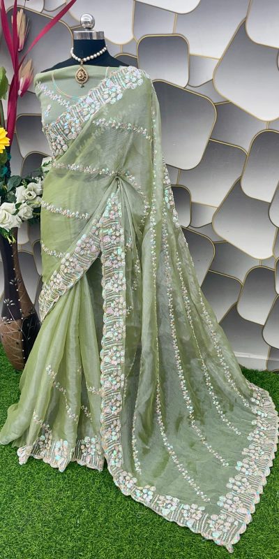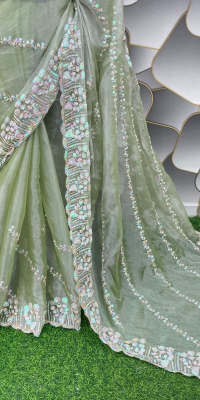 SC 289 Pista Green Color Jimi Choo Silk Beautiful Embroidery Saree , Party Wear, Events, Festivals Expected Delivery 4-6 Working Days 1599/-