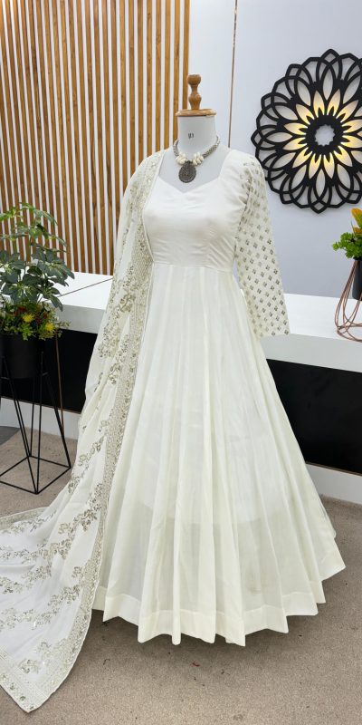 ZF 378 White Color Chinon Silk Embroidery Sequence Work Gown Casual, Wedding, Party, Festive, Events Etc. Expected Delivery 4-6 Working Days @2099/-