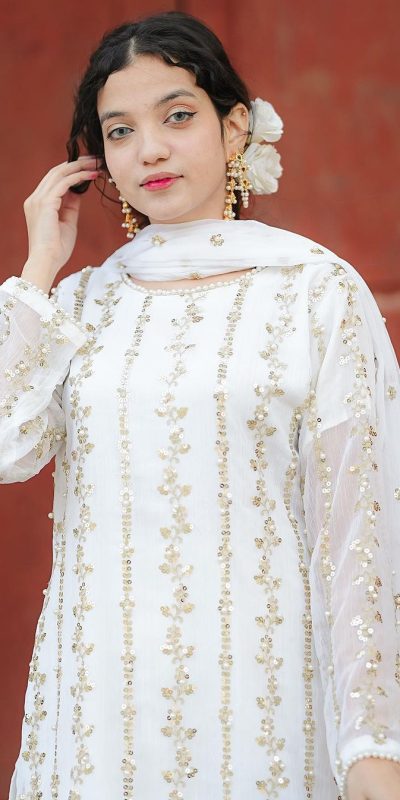 Aglow White Color Georgette Sequence Embroidery Salwar Suit
