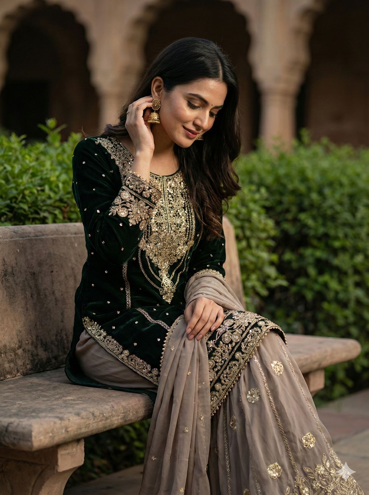 “The salwar suit’s sleeves are designed with attention to detail. The cuffs and embellishments enhance the overall aesthetic.”