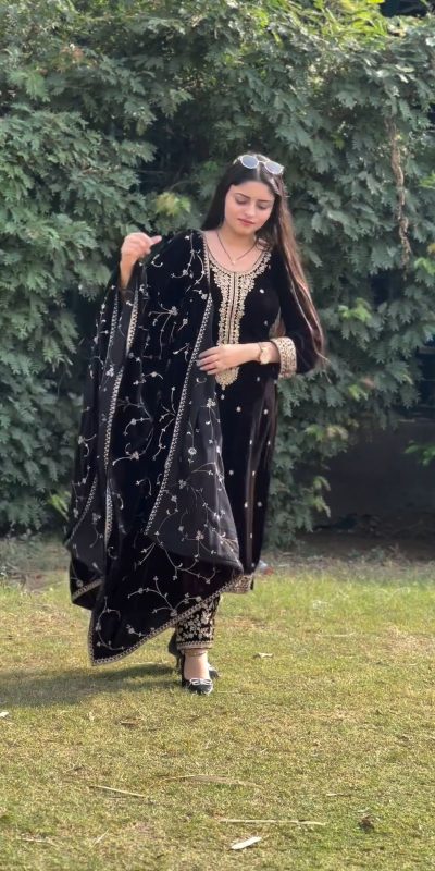 | Fabrics | Top Fabric : Heavy Viscose Velvet With *Heavy Embroidery Sequence Work with Full Sleeves Top Inner :Heavy Micro Cotton Top Length : 38 Inch Top Size : Free Size Stitched Completely Ready To Wear)Sharara Fabric Bottom Fabric : Heavy Viscose Velvet With *Heavy Embroidery Sequence WorkDupatta Fabrics Heavy Viscose Velvet With Heavy 5mm Embroidery Work |