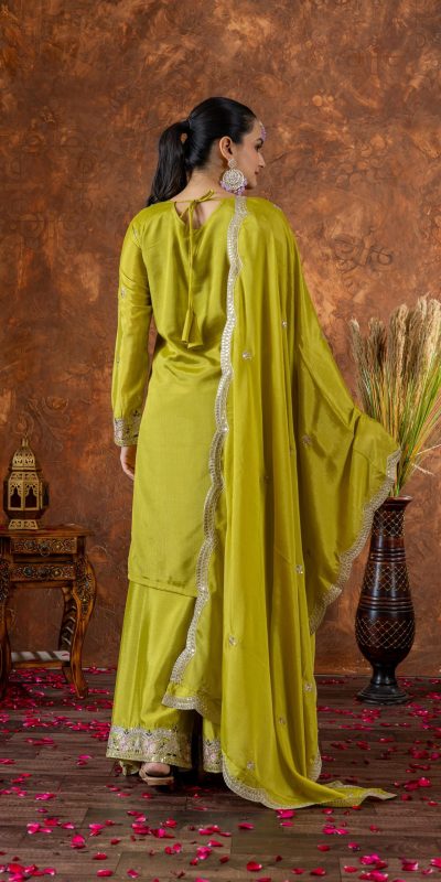 | Fabrics | Top Fabrics : Chinnon Silk Work :Heavy Embroidery 3mm Sequence Coding Dori Work Full Sleeve Coding Dori Work With Extra Fancy Latkan Inner : Heavy Micro Cotton Height : 44-45 inches Top Size : Free Size Sami StitchesPant Fabrics : Heavy Chinon Silk With Embroidery 3 mm Sequence & Coding Dori Work With Elastic Length : 39-40 fully stitched with Pant Size : Free Size Full stitched Dupatta : Heavy Chinon Silk With Embroidery 3 mm Sequence Work With Cutwork |