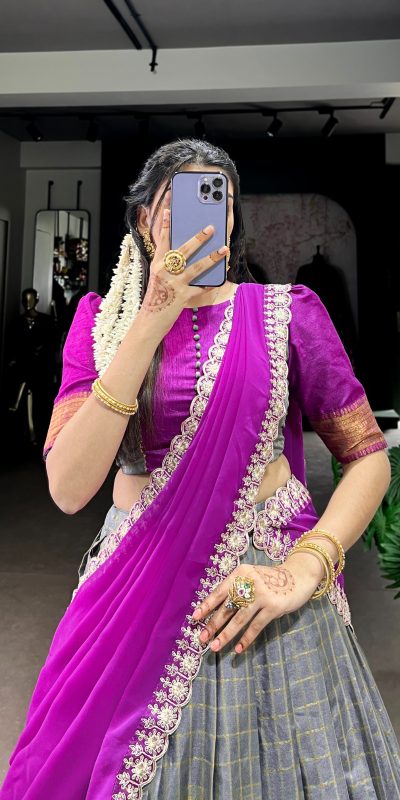 Amazing Grey Color Zari Chex With Zari Weaving Work Lehenga Choli