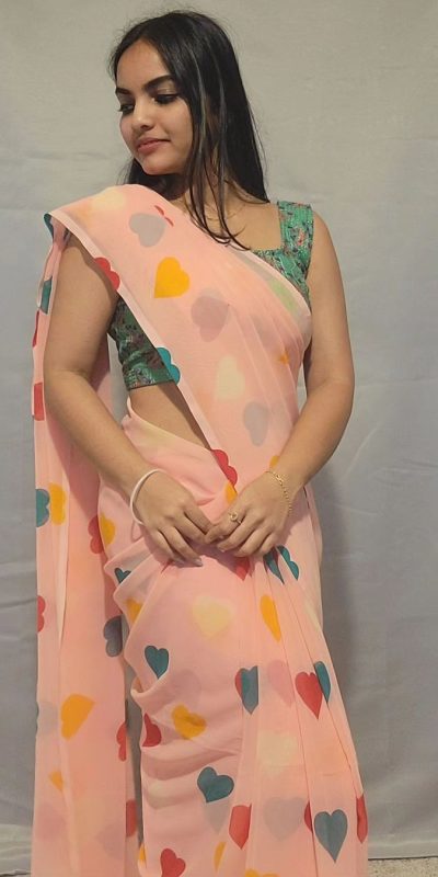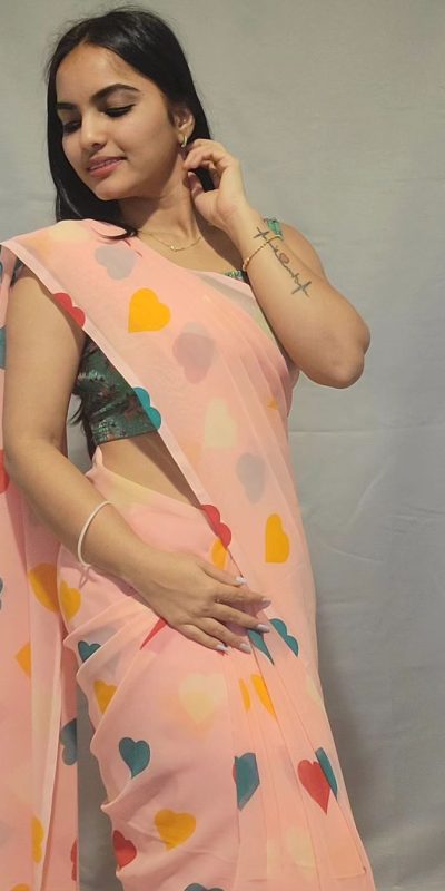 SC 215 Peach Color Soft Georgette Silk Digital Print Heart Design Ready To Wear Saree Casual, Wedding, Festive, Events . Expected Delivery 4-6 Working Days @1499/- only