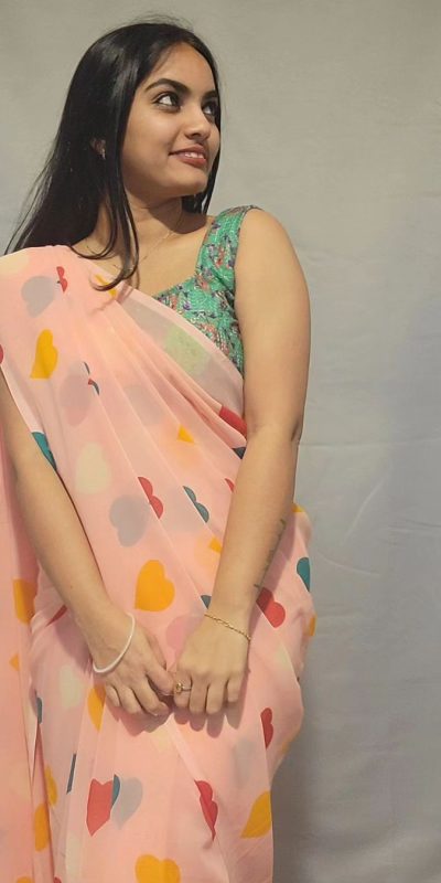 | Fabrics | Saree Fabric : Soft Georgette Silk Saree Work : digital print multi Color Heart Design Ready To Wear Saree design in All over the Body With Border with Trendy and grand pallu Saree : 5.5 Mtr Blouse Fabric : Running Blouse piece Blouse : 0.80 Mtr Un stitched |