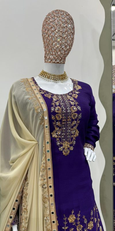 Artful Dark Violet Color Chinon Silk Sequence Thread Work Salwar Suit