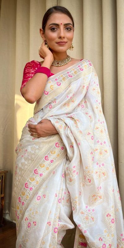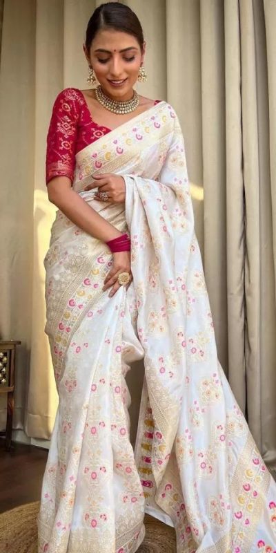 MS 476 White Color Soft Lichi Silk Kubera Pattu On All Over Saree Casual, Wedding, Festive, Events . Expected Delivery 4-6 Working Days @1299/- only