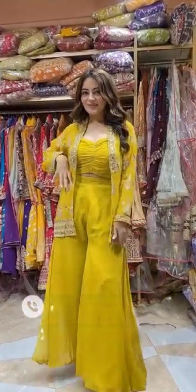 | Fabrics | Blouse Fabric : Georgette Sequence Embroidery Work On Front pleats On Front Side Inner : Micro Height: 14”inch Size : Free Size Semi Stitched Palazzo Fabric : georgette (Free Size) Height : 38”inch Koti Fabric : Georgette Sequence Embroidery Work Height : 31”inch |