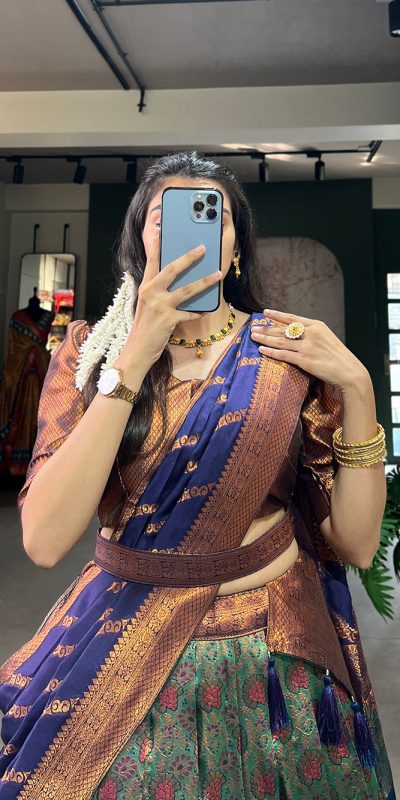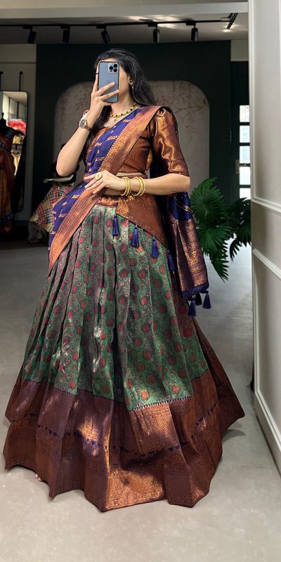 Beautiful Navy Blue Color Silk Jacquard Zari Weaving Work Lehenga Choli