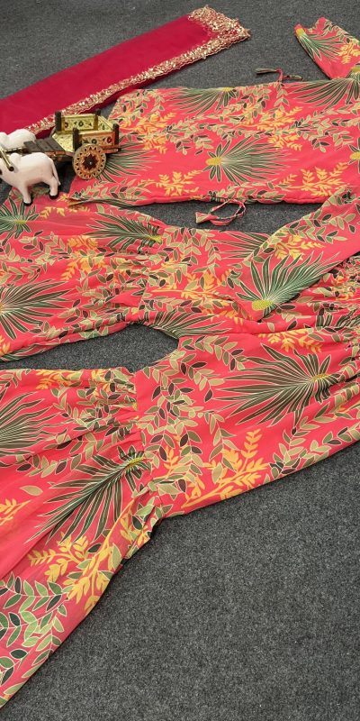 Work : Digital Print Palazzo Fabrics : Faux Georgette Palazzo inner : Micro fully stitched Palazzo Length : 40-41 Inch Dupatta Work : Embroidery sequins Cut work Dupatta Size : 2.3 Meter |