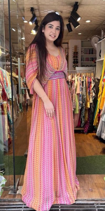 PC 177 Pink Color Georgette Digital Printed Hand Khatli Gown Casual, Party Wear, Events, Festivals Wear Etc. Expected Delivery 4-6 Working Days @2199/-