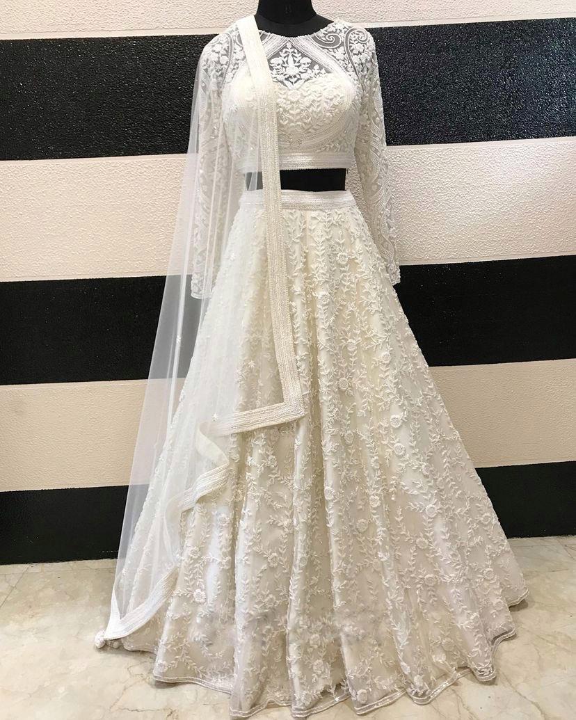LG 433 White Lehenga : Georgette Blouse : Georgette Work : Embroidery Work Traditional Wear, Festive, Wedding, Events @1999/- | Lehenga, Bollywood Lehenga, Creative Lehenga, Designer Lehenga, Embroidered Lehenga, Party Wear Lehenga