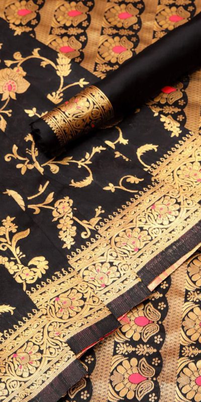 Black Banarsari Silk With Lace Border Saree