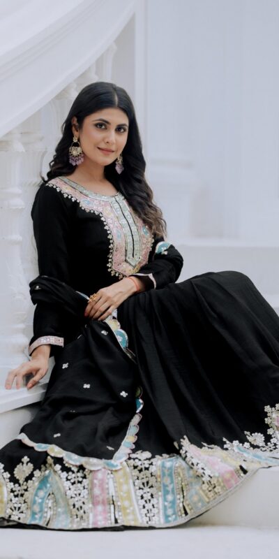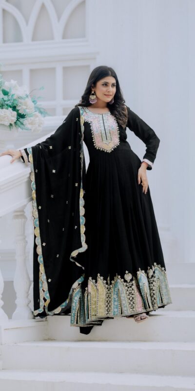 Black Chinon Silk Embroidery Work Salwar Suit
