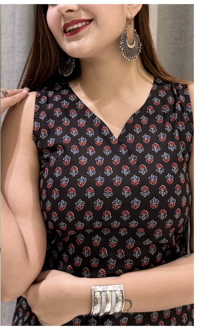 Black Cotton Printed Kurti