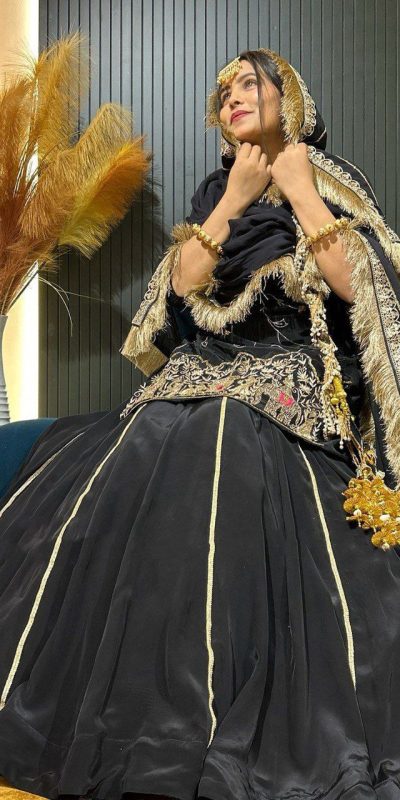 Black Natural Crep Silk Bead Lace Work Salwar Suit