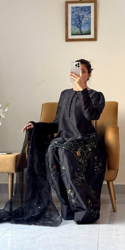 Top Fabric : Pure Natural Crep Silk With Embroidery Sequence Work With Full Sleeve