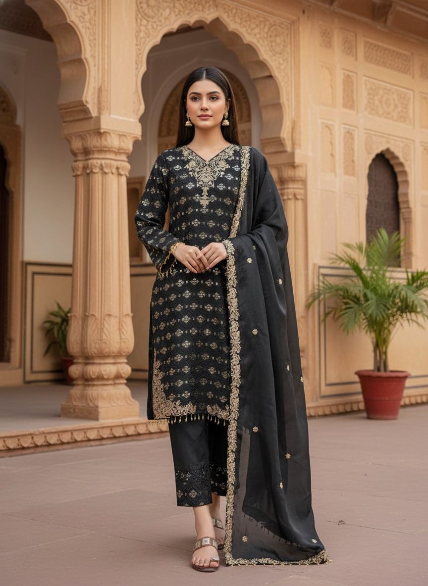 Black Pure Organza Silk Sequence Work Salwar Suit