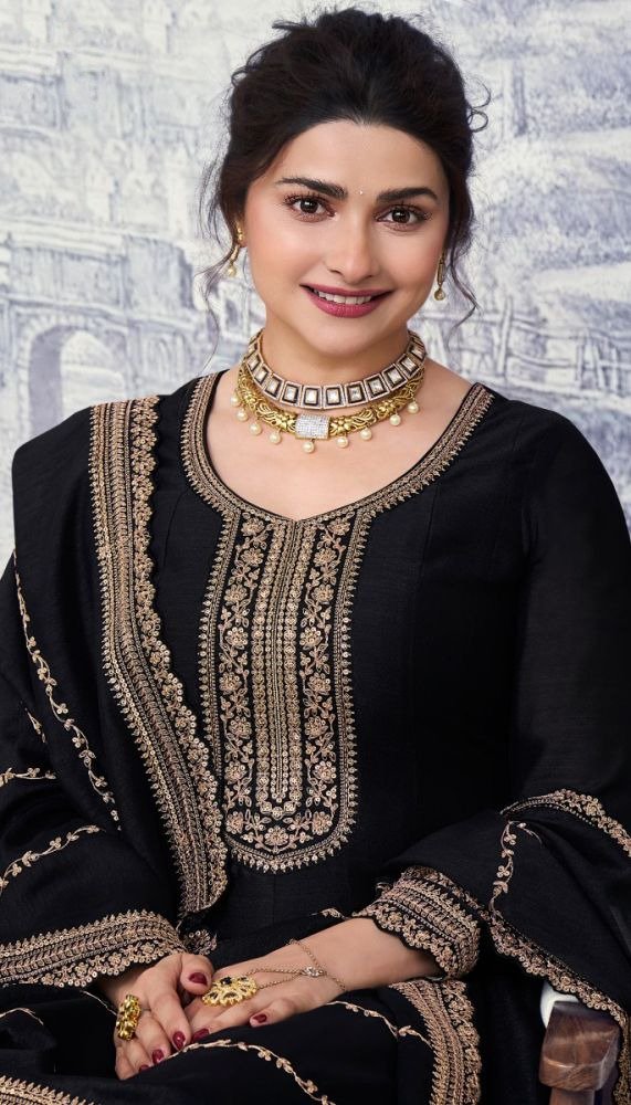 Black Silk Georgette Embroidery Work Salwar Suit