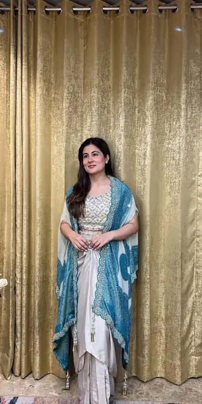 Blue Crap Silk Embroidery Mirror Work Dhoti Suit