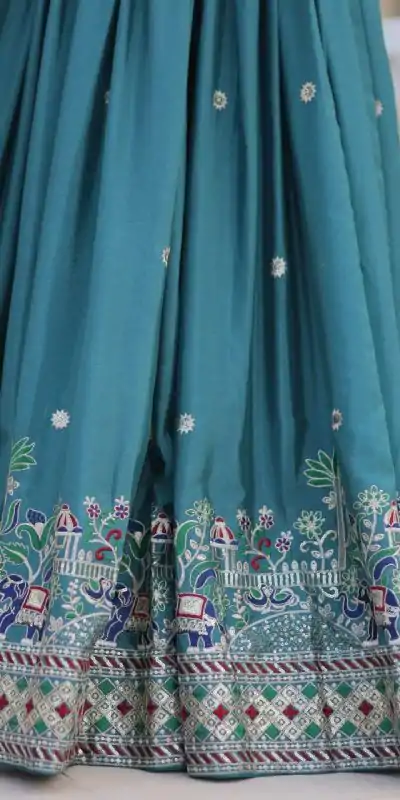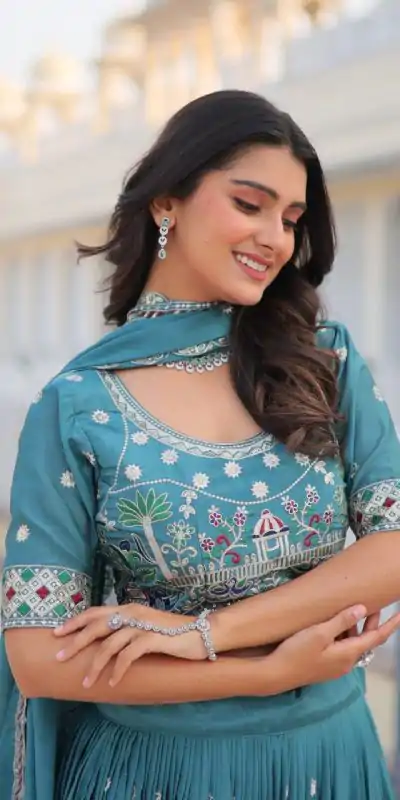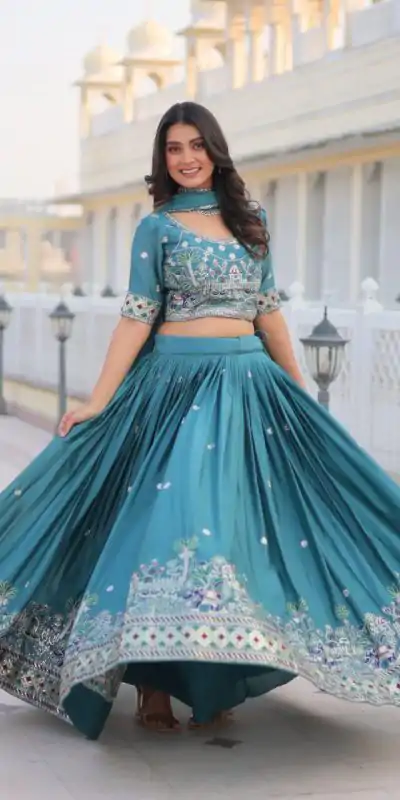 Blue Pure Chinon Embroidery Work Lehenga Choli