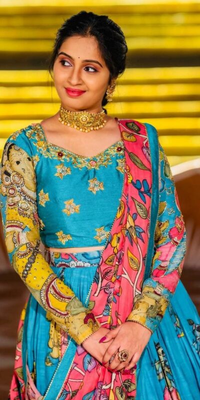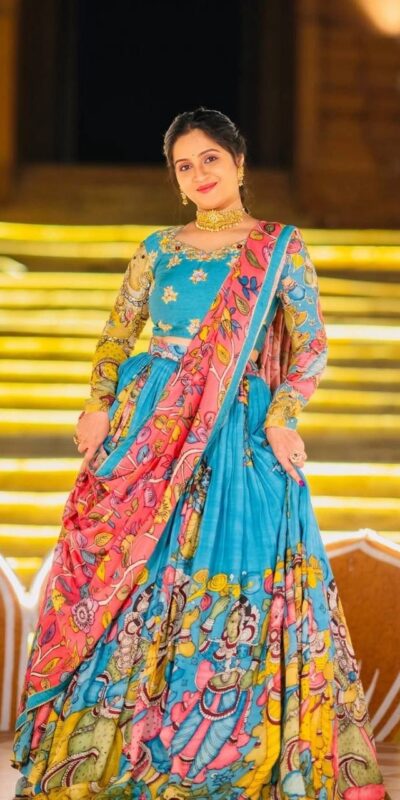 Blue Rayon Cotton Kalamkari Printed Lehenga Choli
