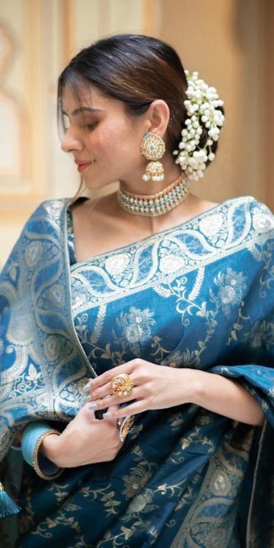 MB 494 Blue Color Soft Litchi Silk All Over Weaving Saree Casual, Wedding, Festive, Events . Expected Delivery 4-6 Working Days @1199/- only