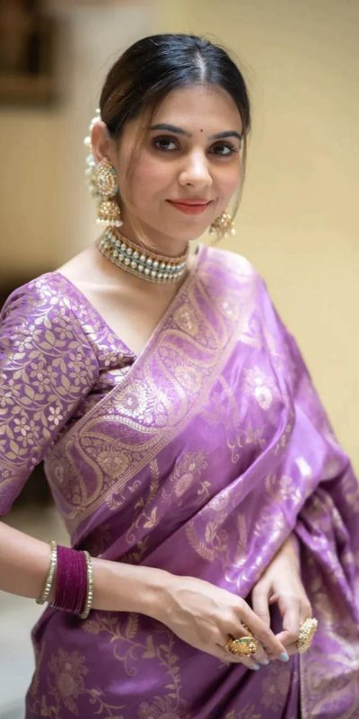 MB 494 Purple Color Soft Litchi Silk All Over Weaving Saree Casual, Wedding, Festive, Events . Expected Delivery 4-6 Working Days @1199/- only