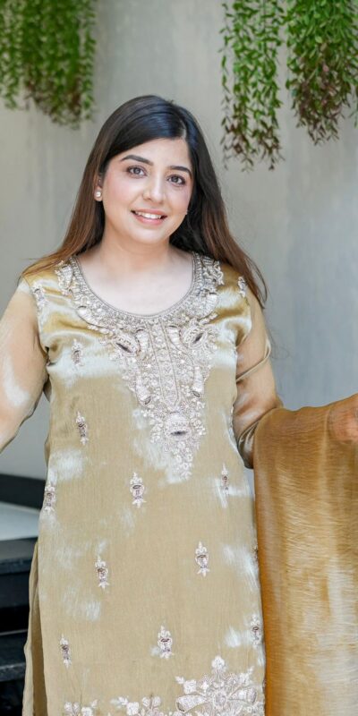 Brown Jimmy Choo Embroidery Lace Work Salwar Suit