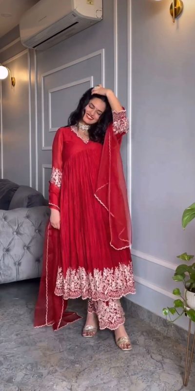 NF 1205 Red Color Chinon Silk Embroidery Salwar Suit Casual, Wedding, Party, Festive, Events . Expected Delivery  4-6 Working Days @2149