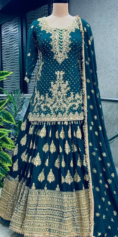 | Fabrics | Top :Pure Chinnon Silk Inner : Micro Cotton Work : Embroidery Sequence Work With Sleeves Length :36-38 Size : Free size Type : Semi Stitched Lehenga :Pure Heavy Chinnon Silk With Heavy 5mm Embroidery Sequence Work (semi stitched) Lehenga Inner :Heavy Micro Cotton Lehenga Flair : 3 Meter Dupatta : Pure Heavy Chinnon Silk With Embroidery Sequence Work and Embroidery Sequence lace Border Dupatta Length: 2.10 mtr |