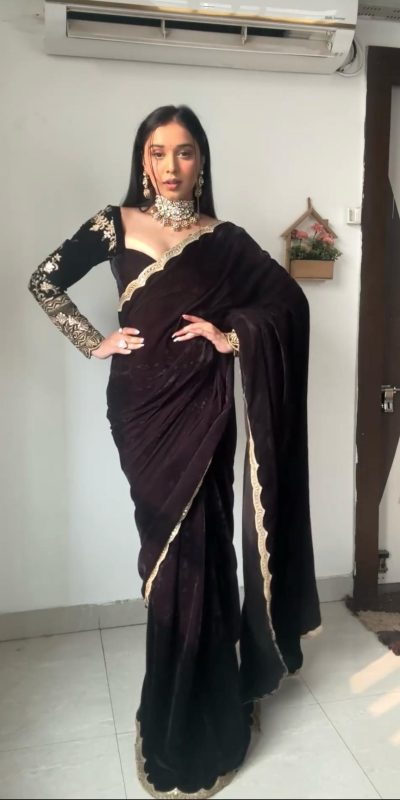 Classic Black Color 9000 Velvet Thread Sequence Saree