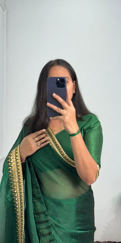 ST 470 Green Color Burberry Foil And Zari Embroidery Work Saree Casual, Wedding, Party, Festive, Events Etc. Expected Delivery 4-6 Working Days @1799/-