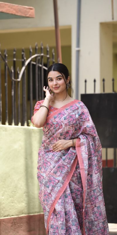 | Fabrics | Saree : Heavy linen Work : Beautiful Digital Print Blouse :Running |