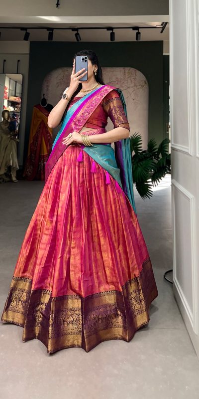 Classic Pink Color Kanjivaram Zari Weaving Work Lehenga Choli