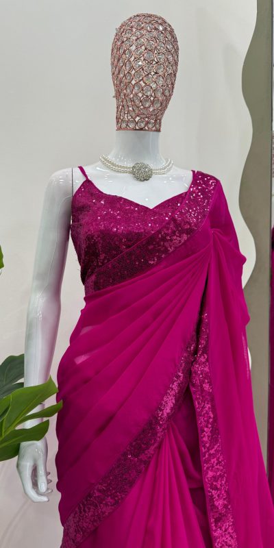 KD 503 Rani Pink Color Tabby Silk Sequence Beglory Silk Saree Casual, Party Wear, Wedding, Events Etc. Expected Delivery 4-6 Working Days @1999/-