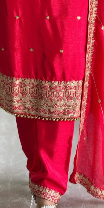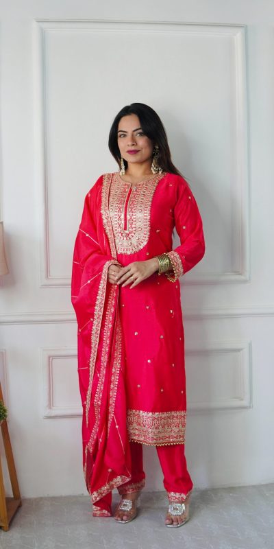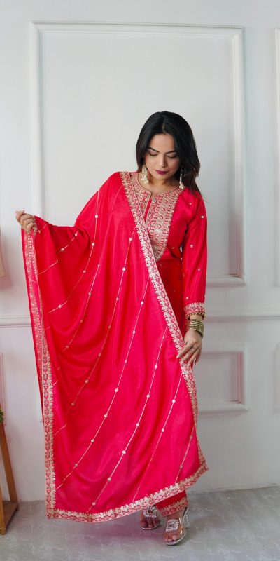 | Fabrics | Top Fabric : Pure Cosmo Silk With Heavy Embroidery Sequence Work top Inner : micro Cotton top Length : 45-46 Inch Top Size. : Free size Sami stitched Full Stitched bottom Fabrics : Pure Cosmo Silk With Heavy Embroidery With Micro Cotton And Elastic Dupatta Fabrics : Pure Cosmo Silk With Embroidery Work And Four Said Lace Work |